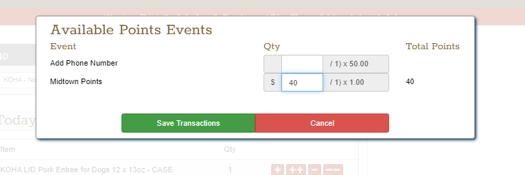 Enter in their points they would receive based on what they spent and Save Transaction.