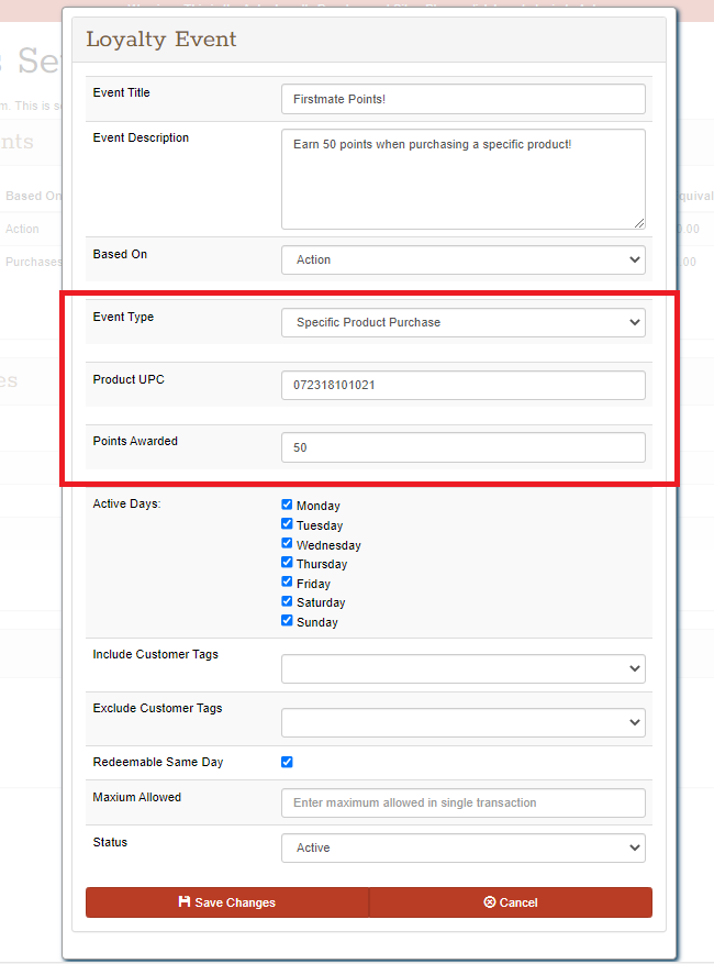 This option will allow you to reward an amount of points if the customer purchases a specific UPC at your store.