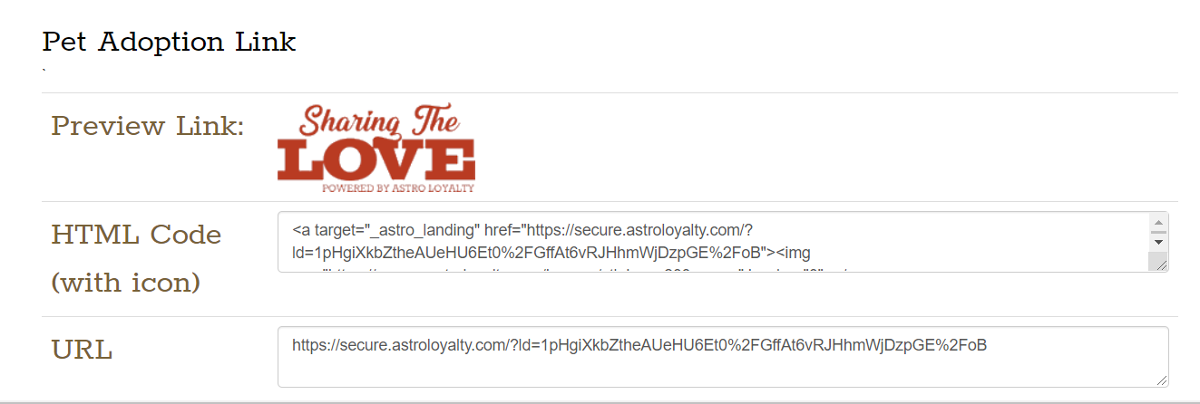 When you sign up for Sharing the Love and adoption offers, we will automatically create a special Pet Adoption Bundle page branded for your store!