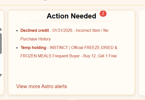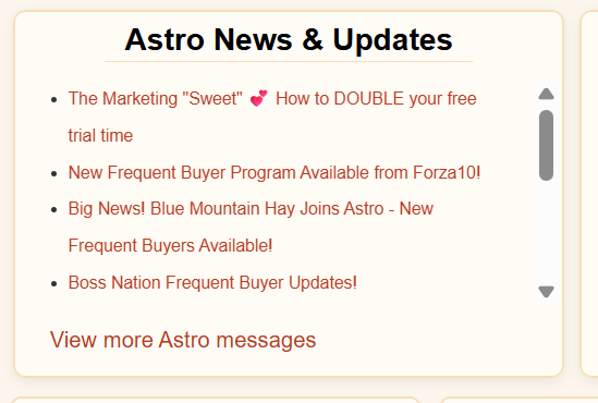 Stay up to date on announcements from Astro! These announcements may include new program launches, updates/changes to existing programs, and other news sent to the user logged into the account.