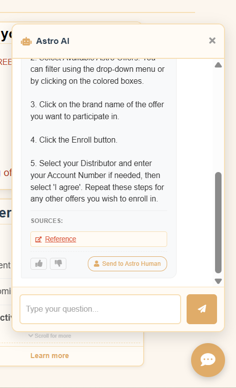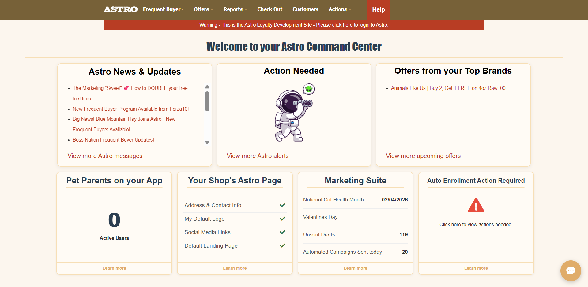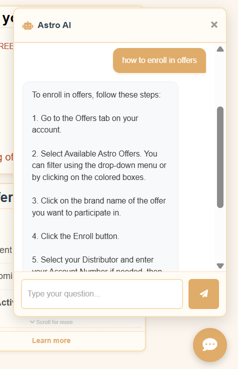 Clicking this box will take you to your Astro Offers Auto-Enrollment Dashboard.