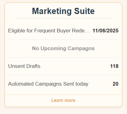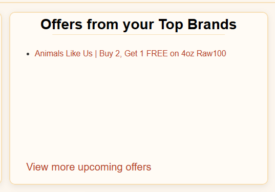 The programs displayed reflect your store’s frequent buyer sales volume over the last 30 days and highlight the top three brands available Offers.