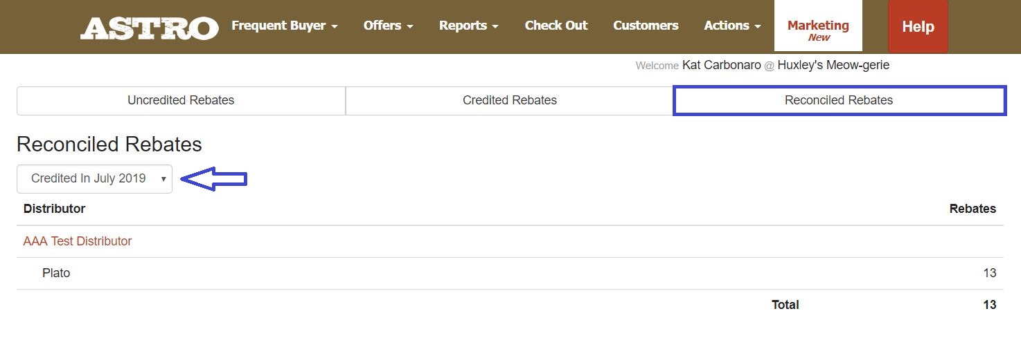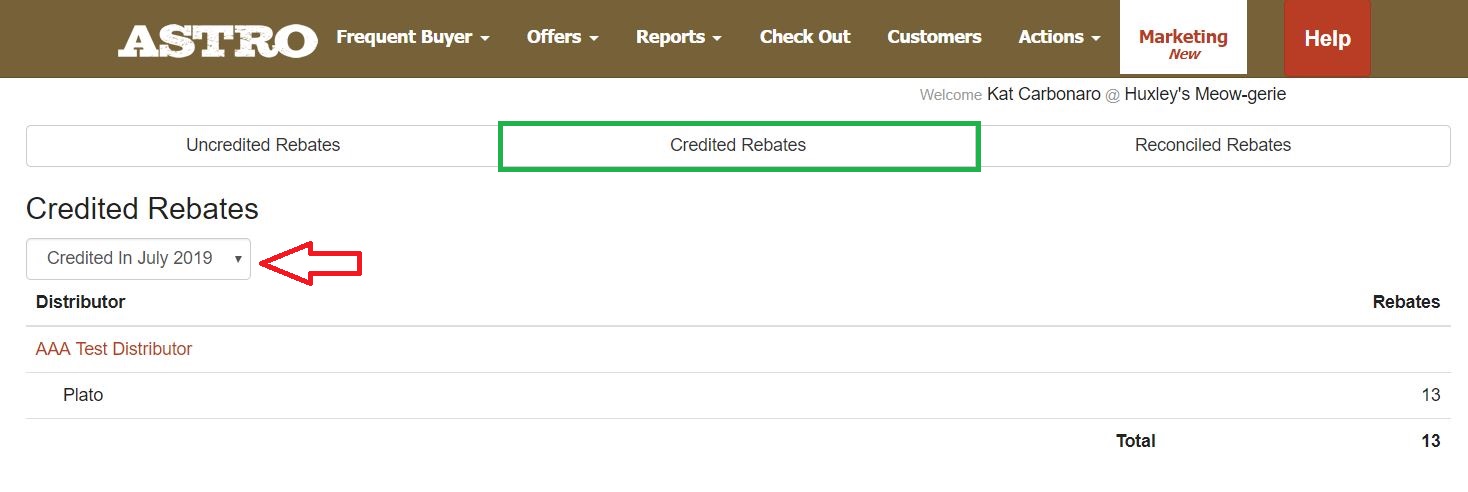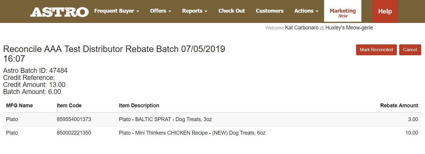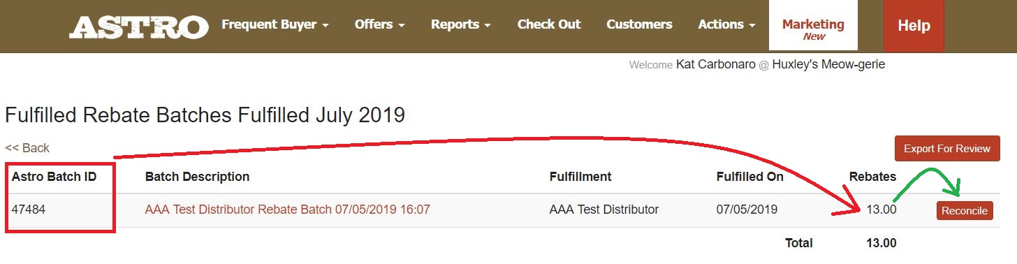 - Now compare the monetary credit reimbursed to you on the credit memo to the number below Rebates on your batch report in Astro.