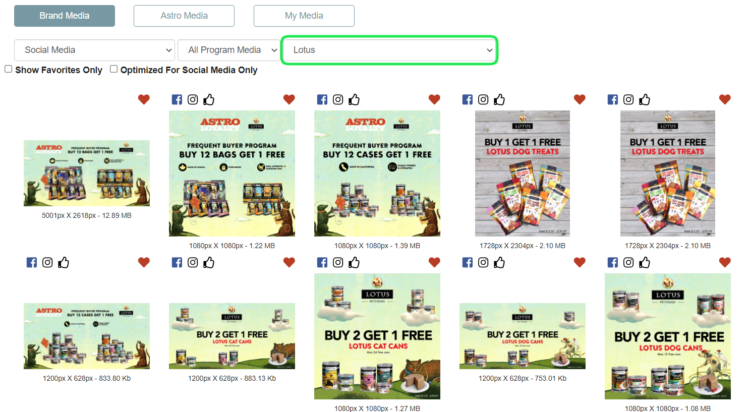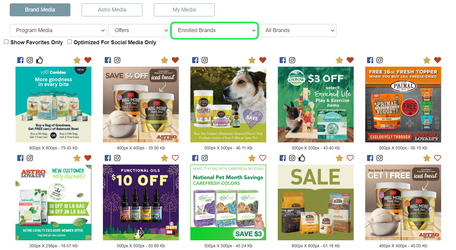 The Brand Media Library will only show you Frequent Buyer images for your enrolled Frequent Buyer Programs. Since Astro has so many available brands with Frequent Buyer programs, we thought to simplify by only showing the ones pertinent to you.