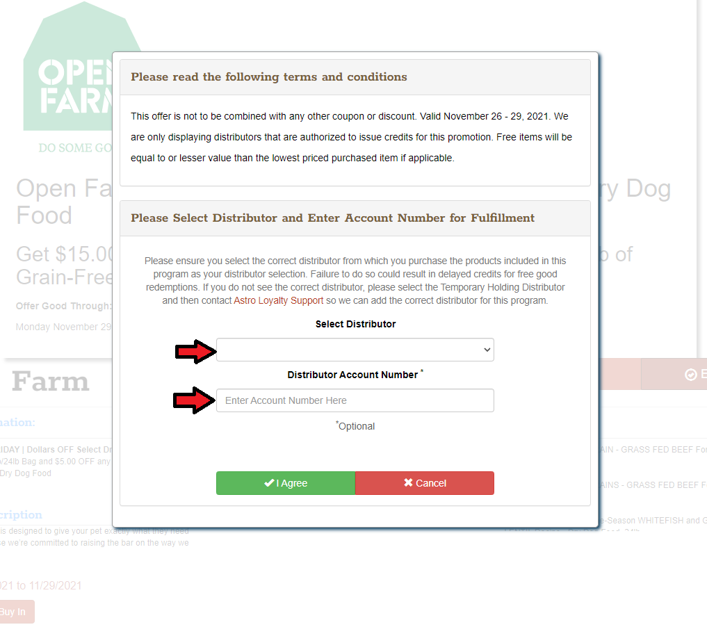 6. Select your Distributor. Enter in your account number if required.