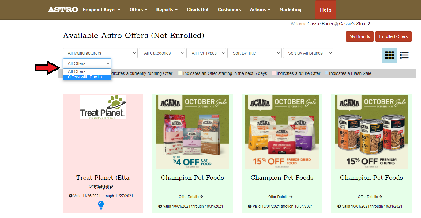 3. You can select the filter option to narrow down the search for just the Offers that have a Buy-In Deal.