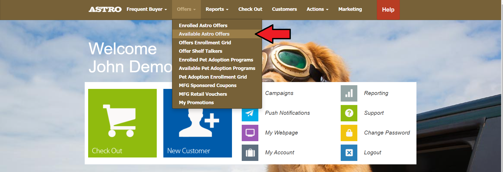 2. Select Available Astro Offers.