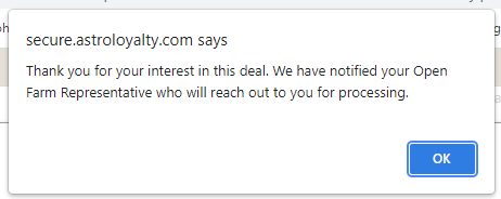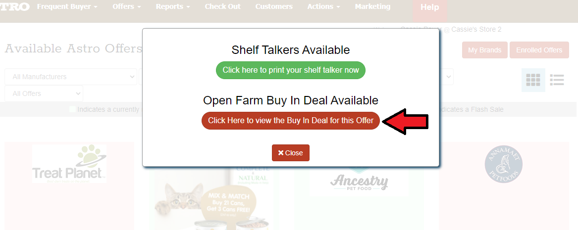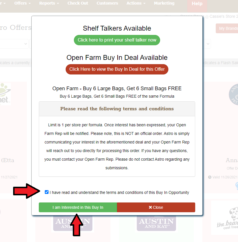 8. This may open another tab on your browser with a PDF file with information about the Buy In. Deals may vary for different brands. You can switch back over to the Astro tab and select the "I'm Interested in this Buy In" button.