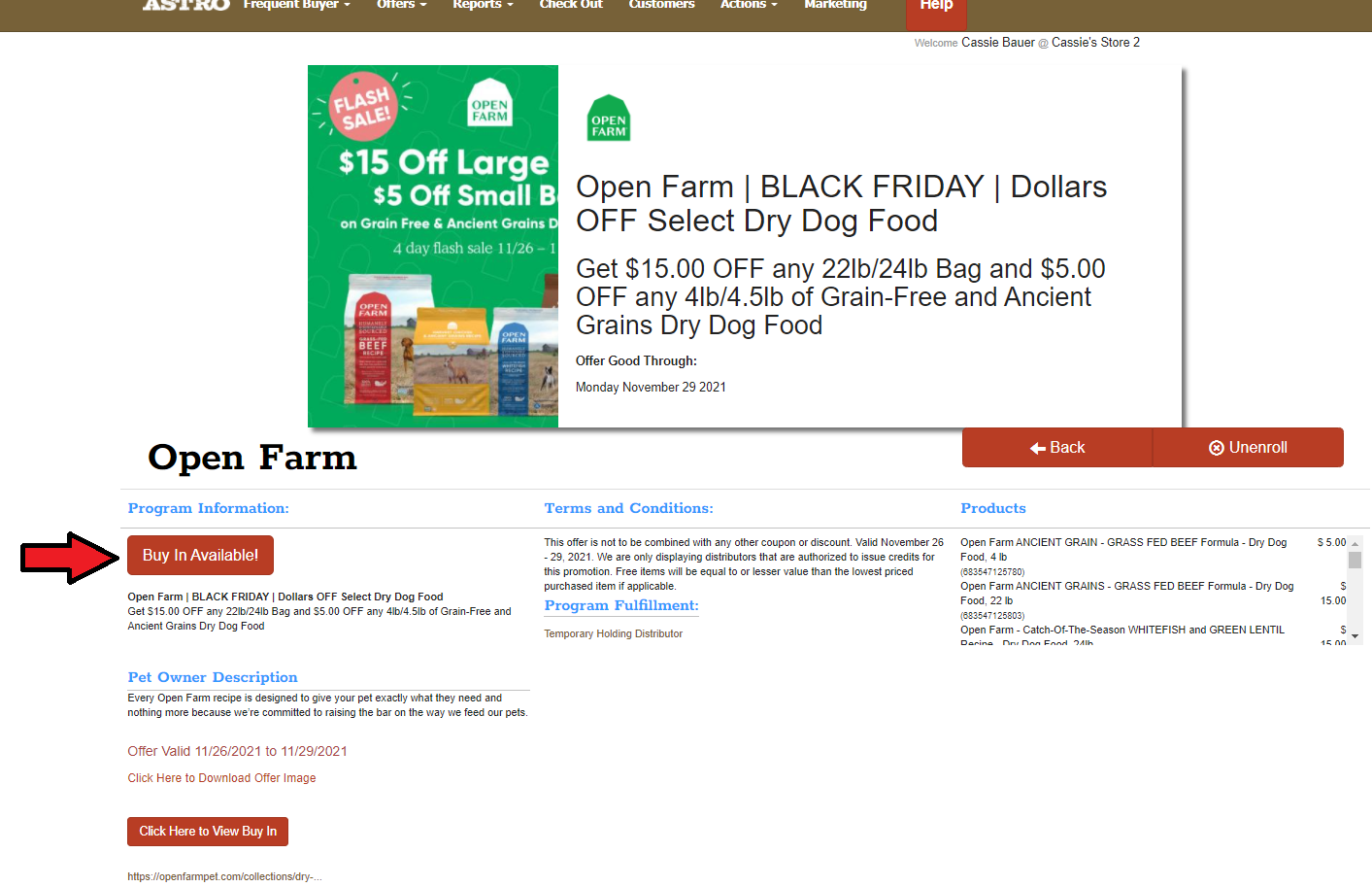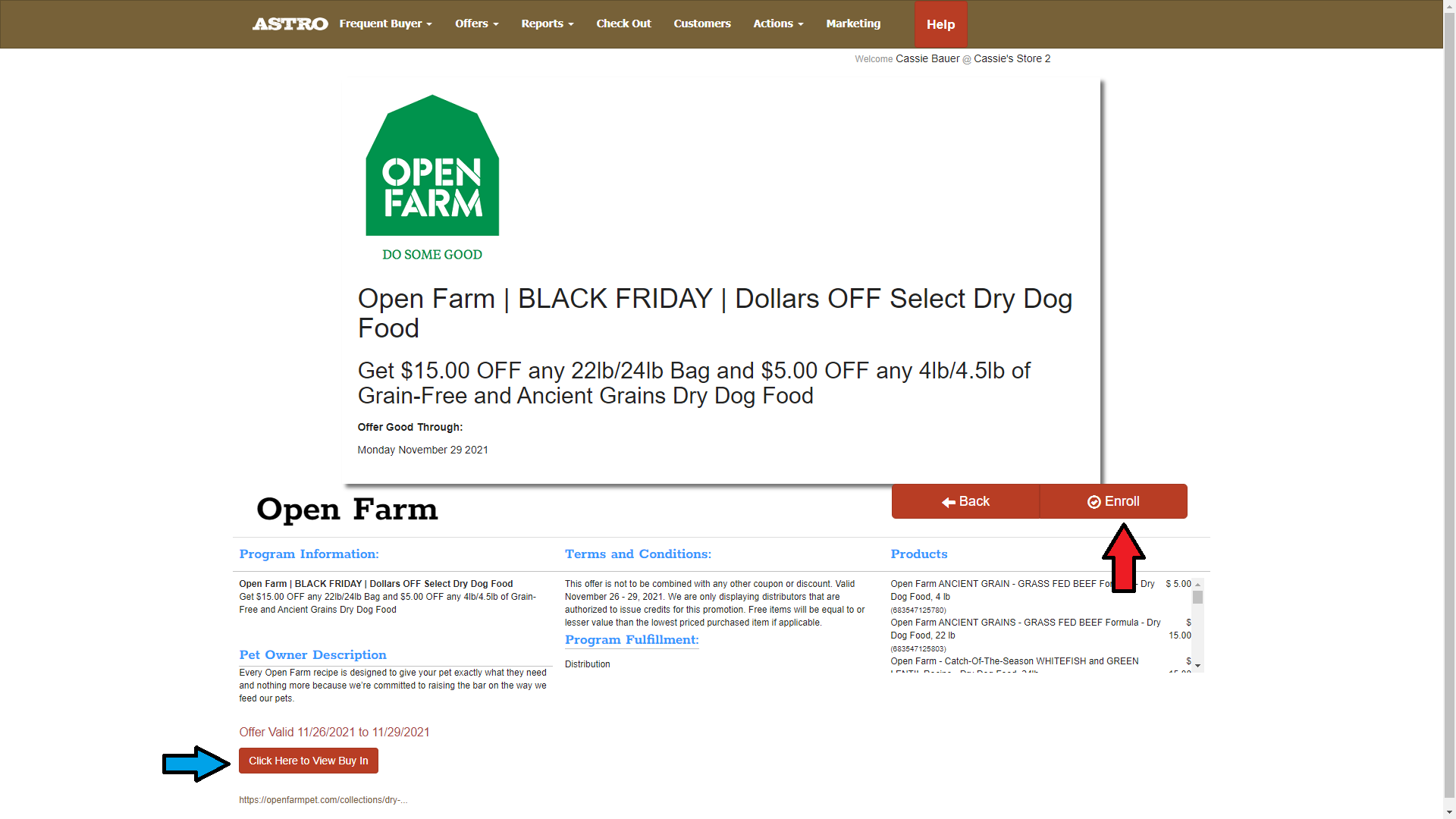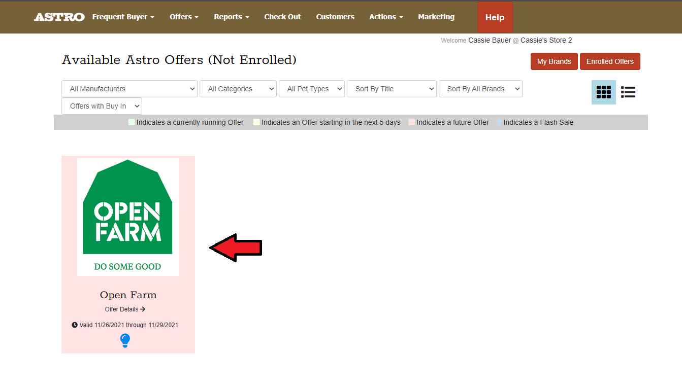 4. Select the Offer. In this example we will be enrolling in an Open Farm Buy In Offer.