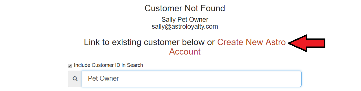 If the client is not found, you will be prompted to add the client to Astro Loyalty.