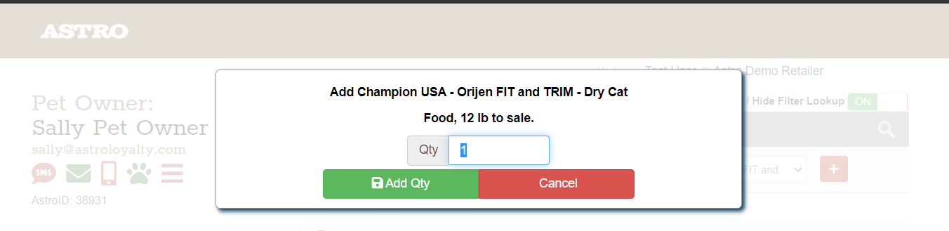3. A Pop-up will appear to enter in the quantity amount.
