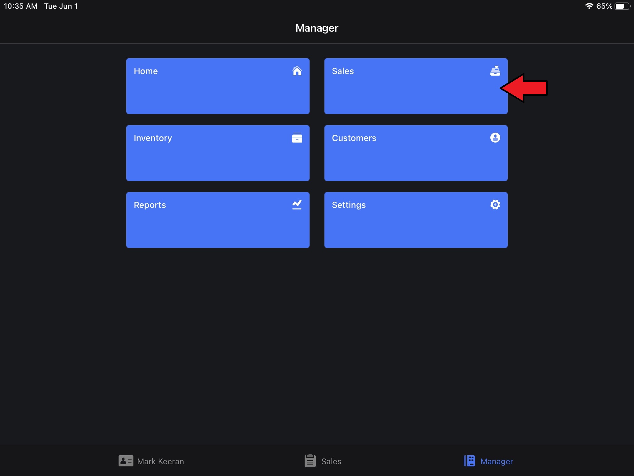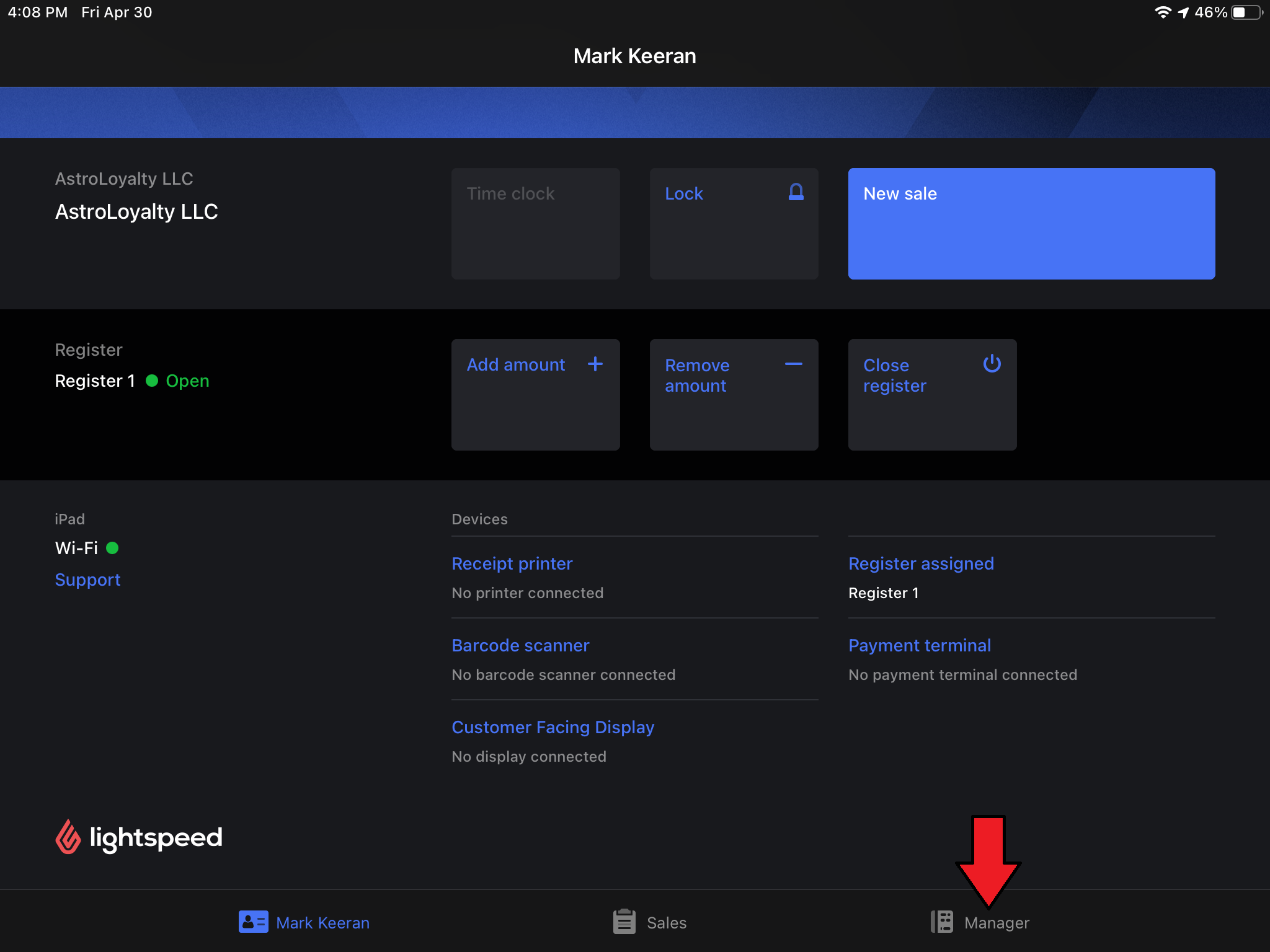 1. On your ipad, go to Manager mode in Lightspeed app.