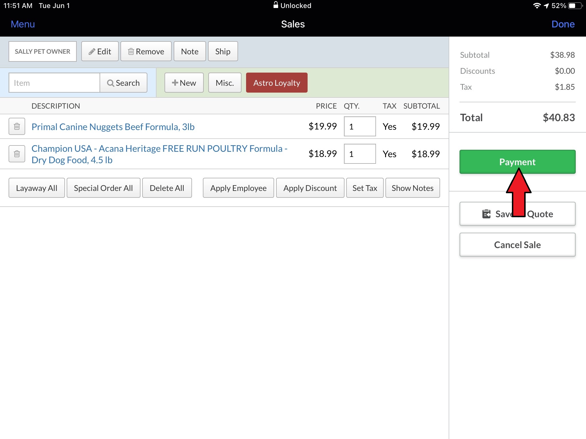 10. This will take you back to the Lightspeed Sale and you can collect the payment.