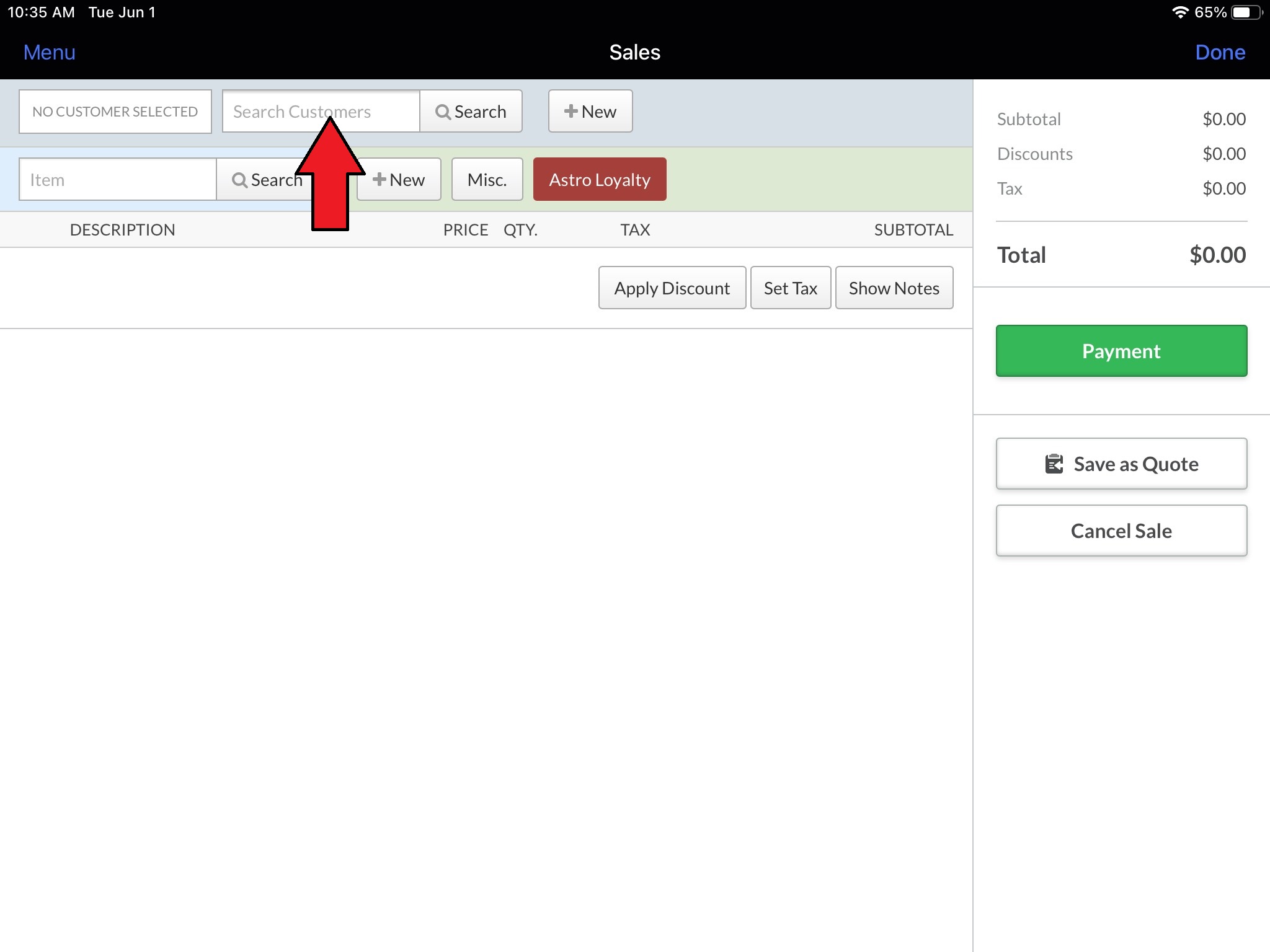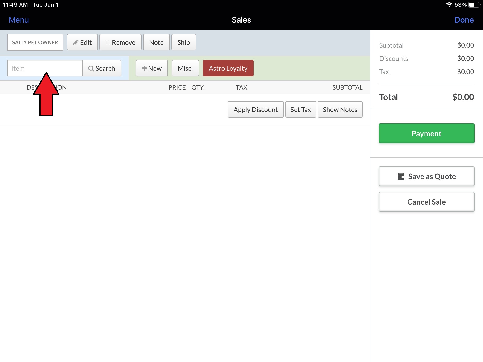 7. Astro will automatically search for the customer using their Last Name. You have a couple options here depending on whether or not you have a customer list in Astro.