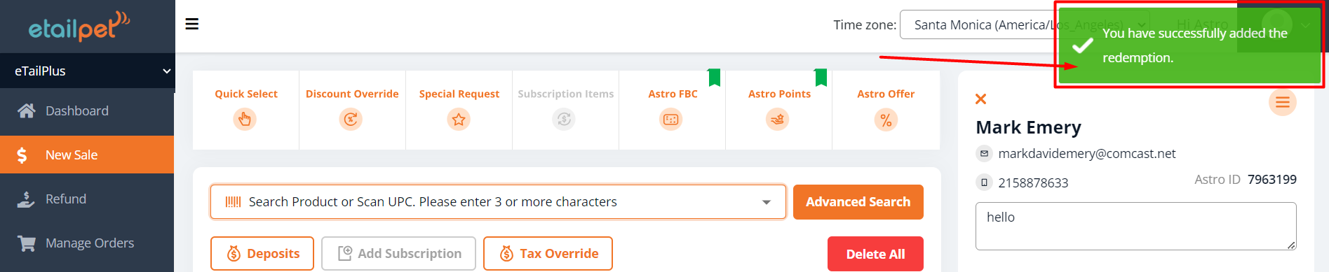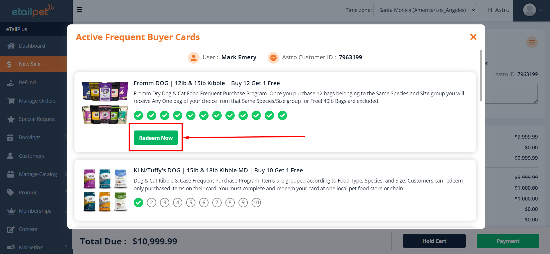 Checkout & Redeeming Frequent Buyers | eTail Pet SELLIT! PLUS POS