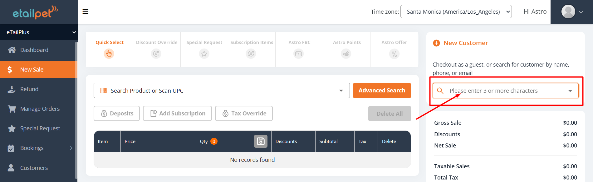 3b. If the customer is already connected, enter in the item(s) they are purchasing.