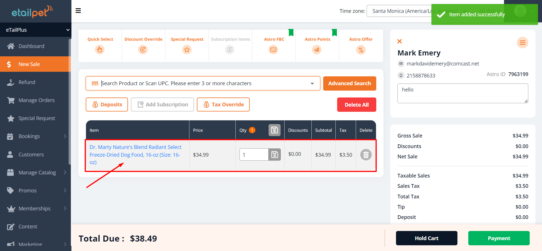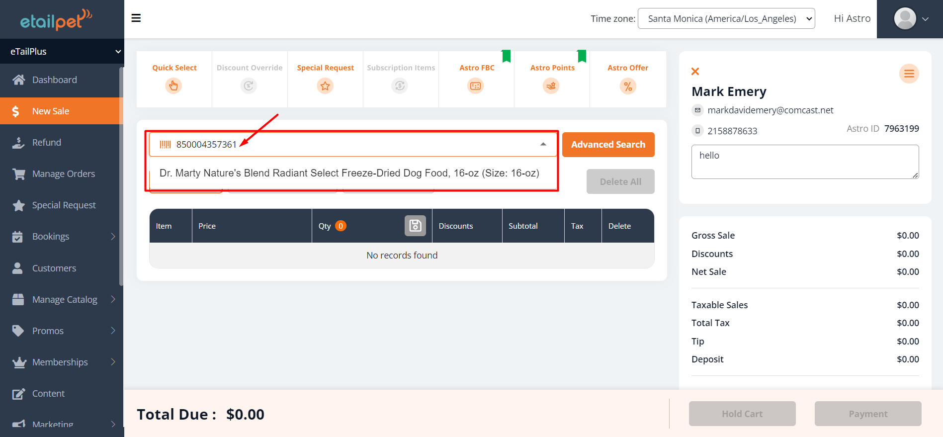 3. Enter in the item they are buying. In this example we are adding a Dr. Marty's Rebate item.