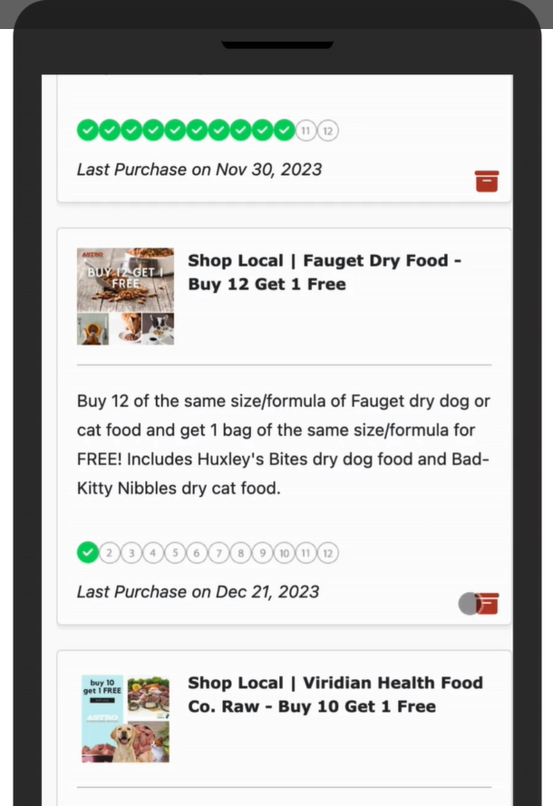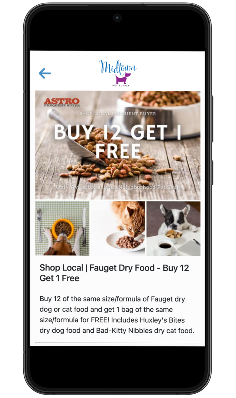 Here you will see Offers and special promotions currently available at your neighborhood pet retailer. 1. If you haven't already, download the Astro Loyalty Mobile app to access your Frequent Buyer information. Android: ...