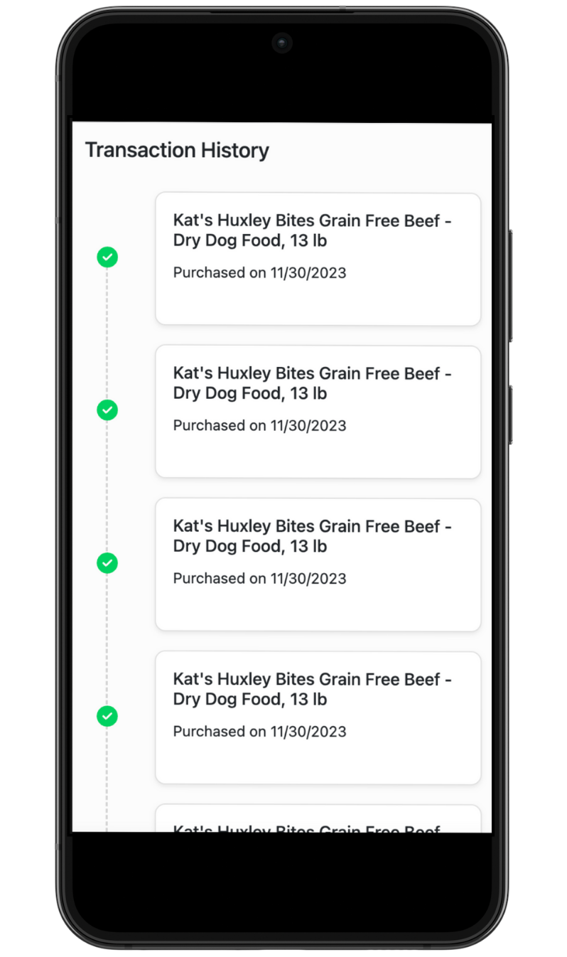 5. You will see product names and purchase dates under Transaction History. This will only display purchases that have a Frequent Buyer program on Astro.