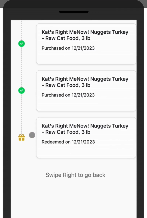 2. Each card will show the date it was redeemed. Click the card for more details.