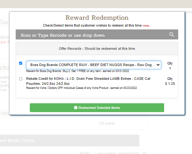 11. Select the item the customer is redeeming and click Redeemed Selected Items.