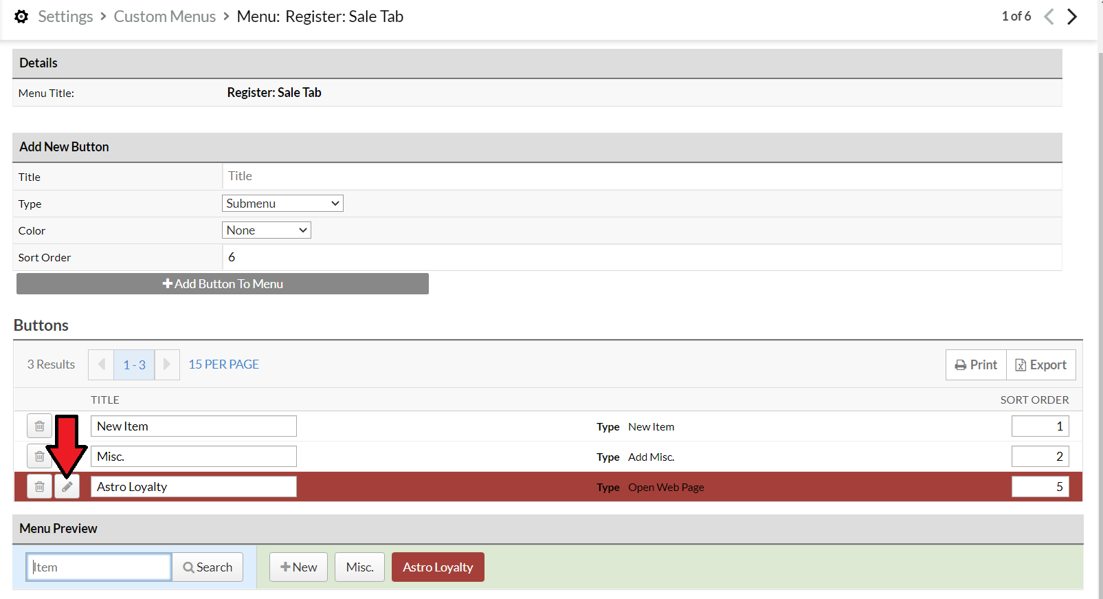 Edit the Astro Loyalty button.