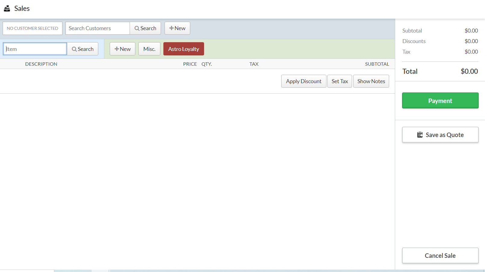 9. Now you will see an Astro Loyalty button on your Sales screen.