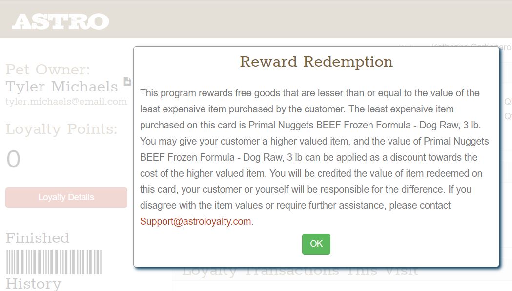 It will also provide you with another option for redeeming the card if you have a customer that is not happy with the free good options they are presented with. Since Astro does not impose on your POS how you offer the earned discount to your customer, you do have a lot of freedom to reward your customer how you see fit. Just remember that whatever you redeem the card for is what you will be credited for. This of course is optional.