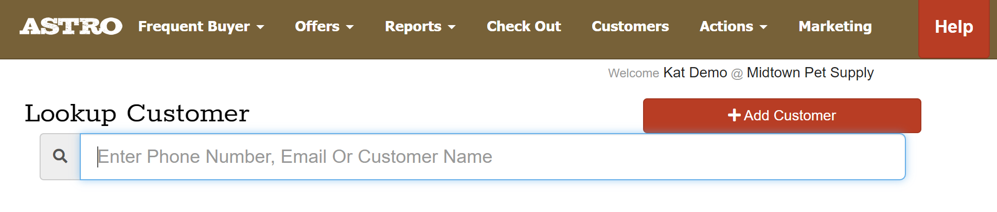 Do NOT ring up any of their purchases yet. Instead click the button or menu item that will take you into Astro. This will help you create the New Customer Account in Astro, or help you link to an existing account.