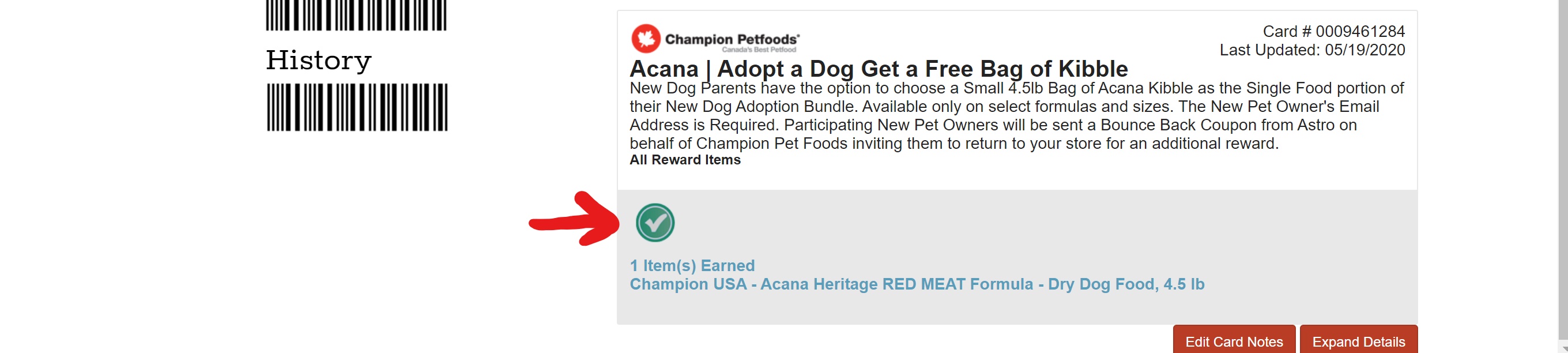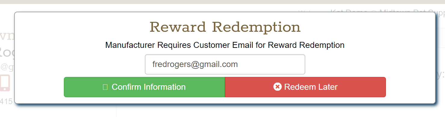 First check the Rewards Earned / Redeemed This Visit section. This section will always be the most important section on an account where a Redemption just took place. Below each of the Rewards it should say This reward was redeemed this visit in neon green letters. This means that the Free Good Reward was successfully redeemed and that this item is now safe to give to your customer for free. It also means that your distributor is able to see a redemption took place so they know they will need to send you a reimbursement credit.