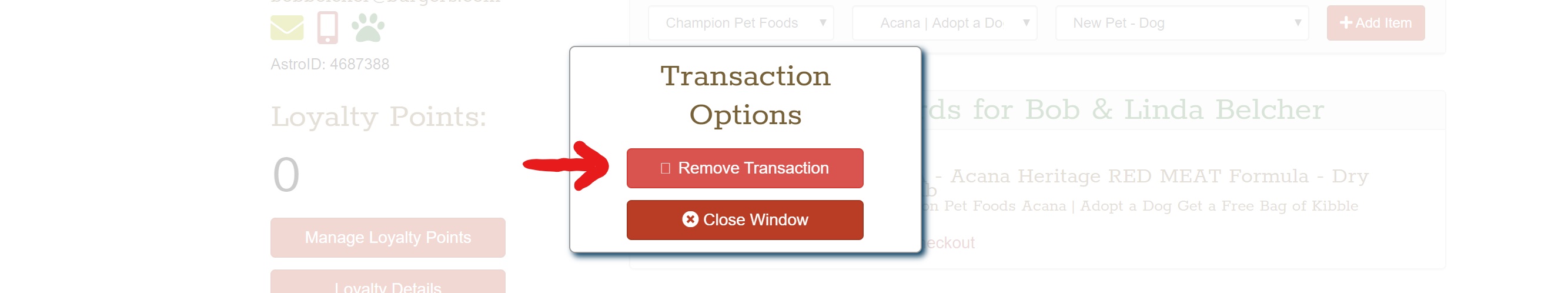 A pop up window will appear. Select Remove Transaction . Another pop up will appear to confirm the removal of this item. Select "Ok".