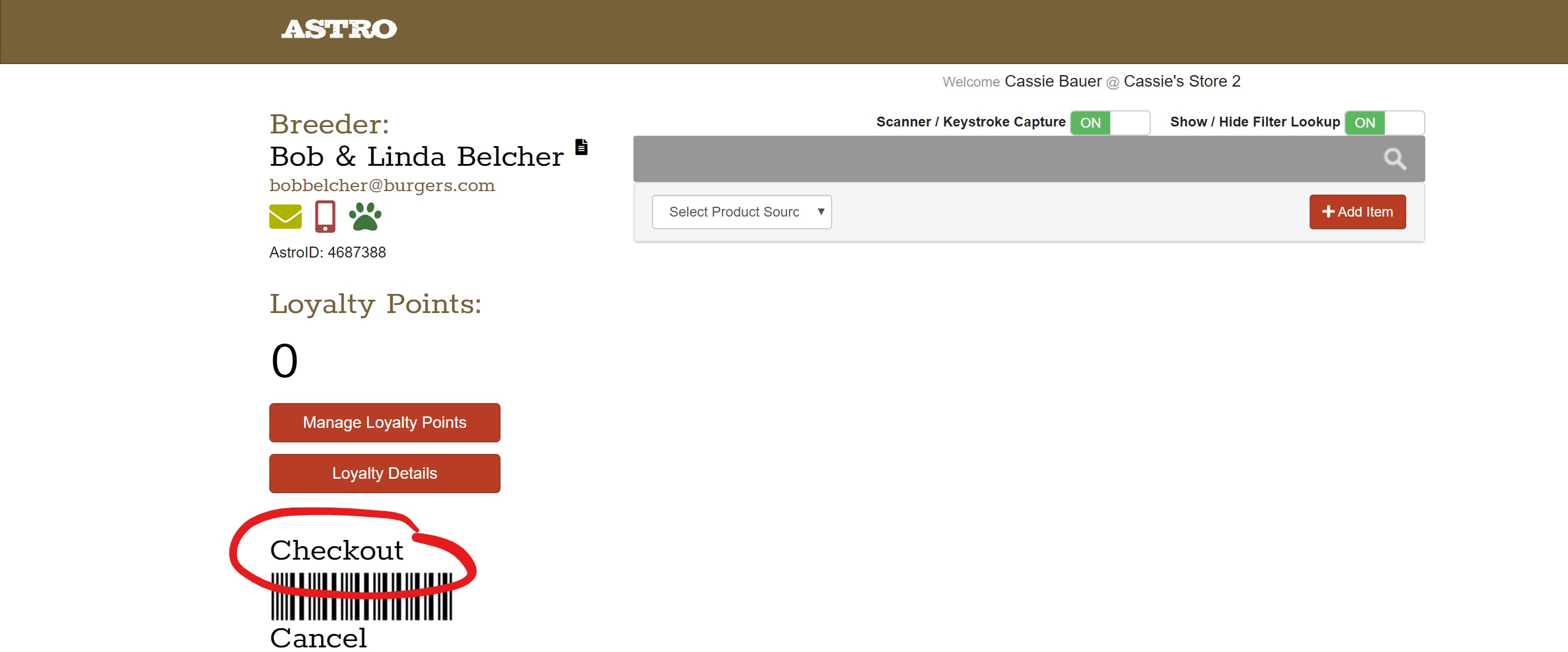 Once the Astro sale in finalized look up the customer in your POS and ring up their complete purchase.