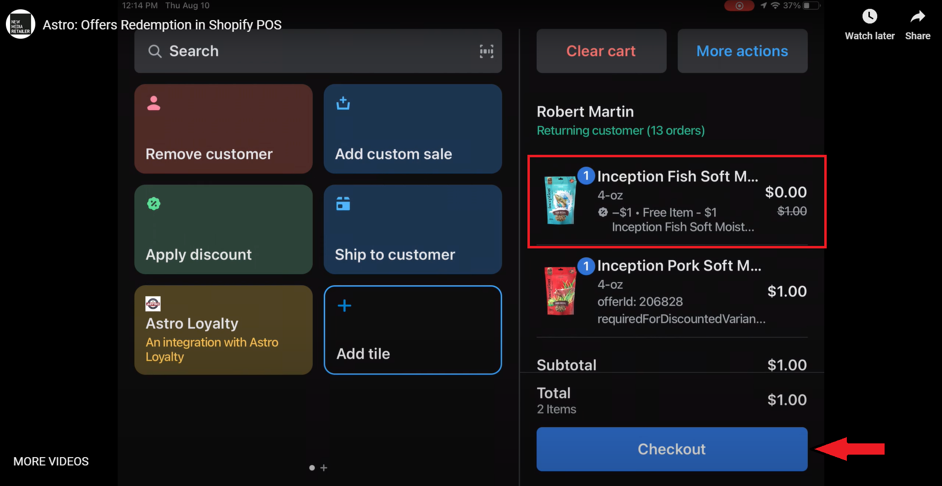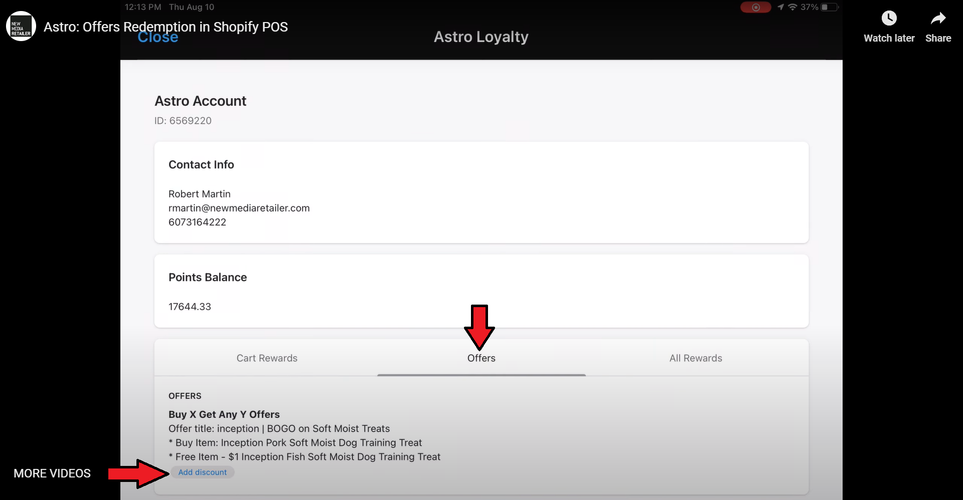 4. Click the Astro app button and navigate to the Offers tab to see if the cart qualifies for a discount. If so, the offer details will appear with an Add Discount button.