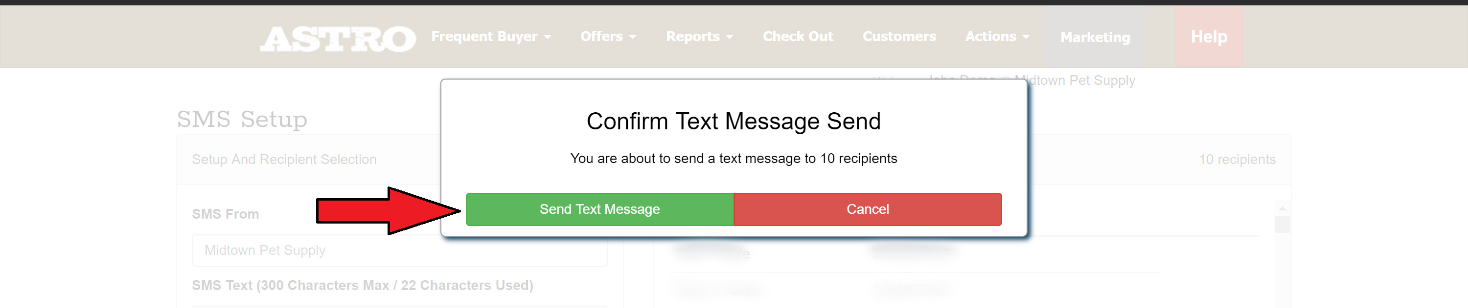 9. A pop-up window will appear for confirmation to send the text message. Select 'Send Test Message' if everything is correct and ready to go!