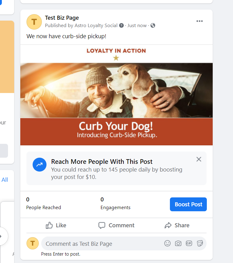 On Facebook, you can Boost Post or Add a Comment. Your followers will also be able to Like, Comment, and Share.