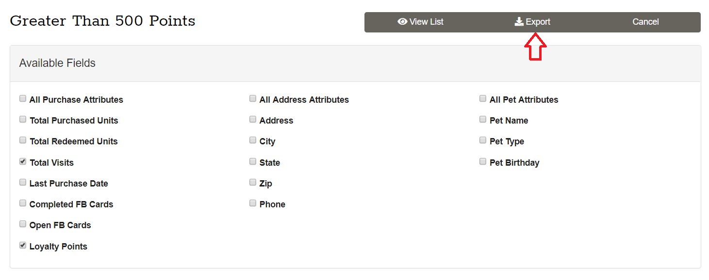 Since the List shown in these examples pertains to my Points program I selected Total Visits and Loyalty Points to add to my List View.  Now when I select View List I can see this additional bits of information.