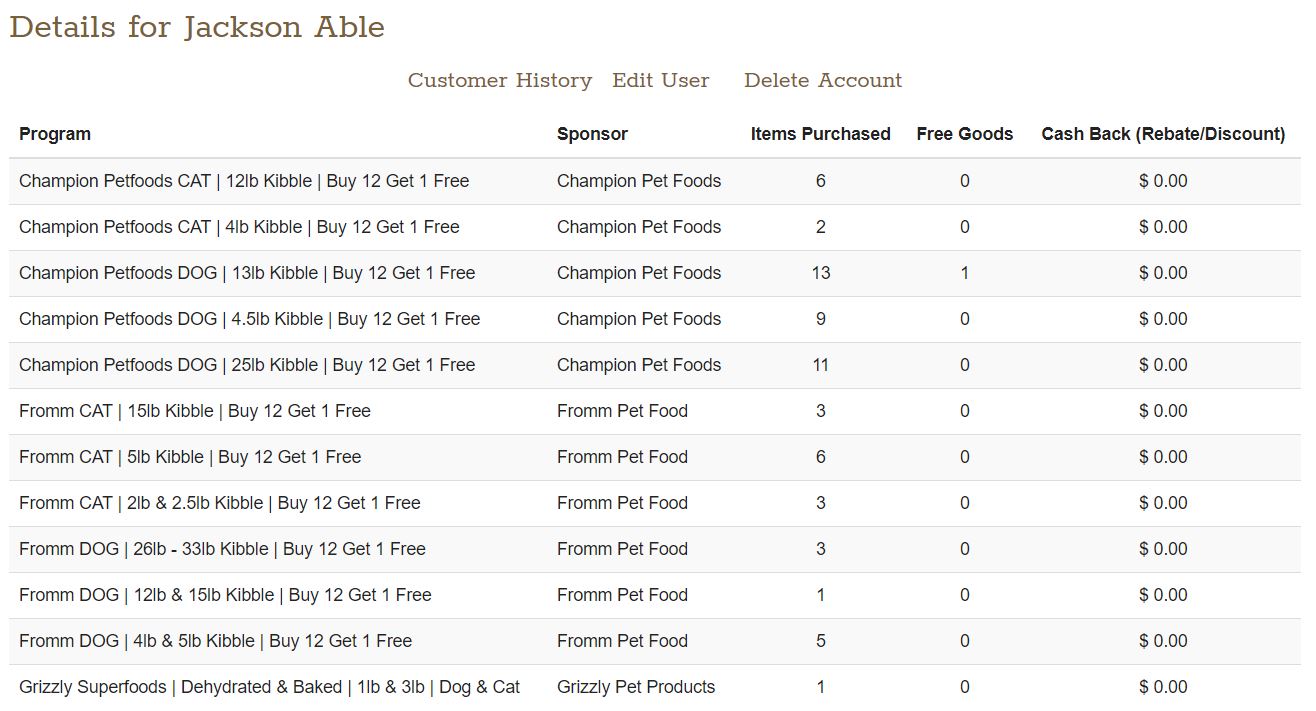 You'll notice that the Astro IDs are all links. If you click on a customer's Astro ID you will bring up an overview of their entire purchase history within Astro. This is the same overview that you see when you select a customer listed on your Pet Owner Lookup Report.