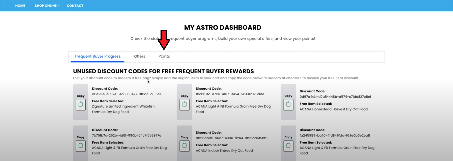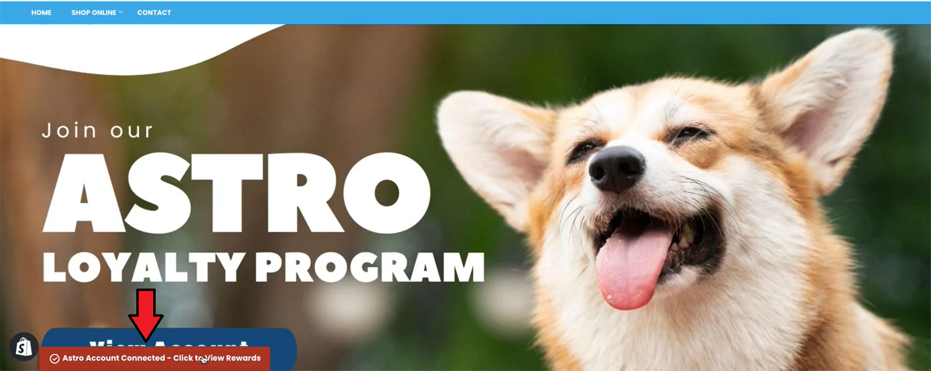 1. Customers can click on the red Astro button at the bottom of the website to view their Astro rewards.