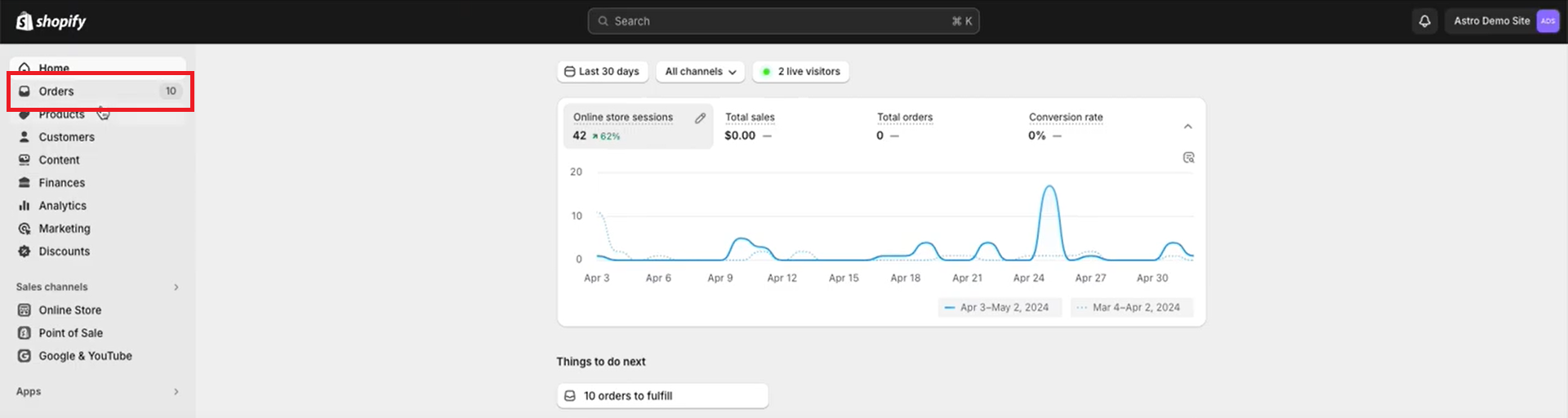 4. Once the customer has paid for their items, on your Shopify dashboard go to Orders.