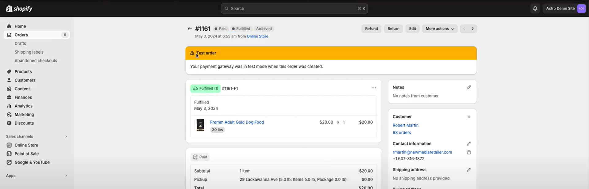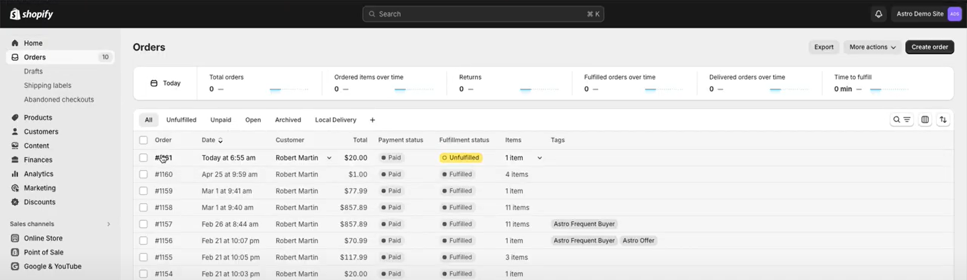 In the scenario that you have an existing Astro customer and that customer is already setup in your Shopify admin, you simply need to link their Astro account to their Shopify account so future purchases are recorded properly. 1. Click on Add ...