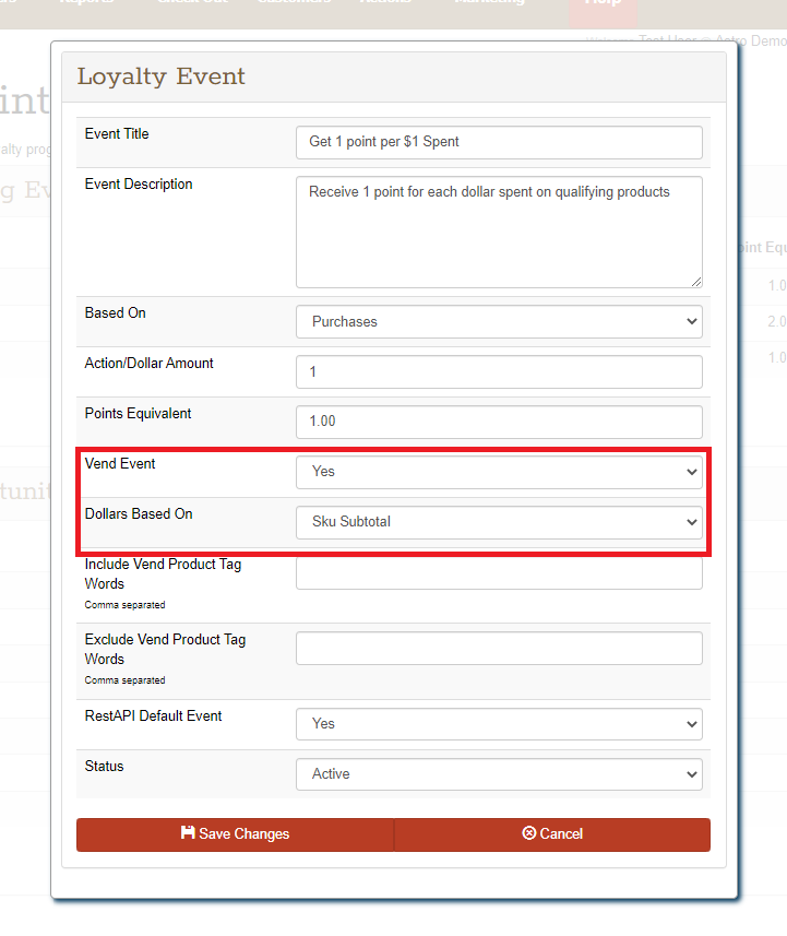 For the Loyalty Event, make sure to have the Lightspeed X Event set to Yes and select how you want the Dollars Based On; Sku Subtotal, Sale Subtotal, or Sale Total.