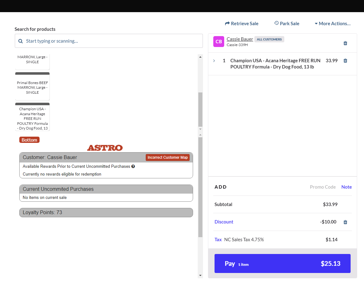 10. Depending on the Rewards that you set for your store(s), you will need to discount the sale according to the Loyalty Reward they earned. Astro does not apply any discounts to your sale. This must be done manually.