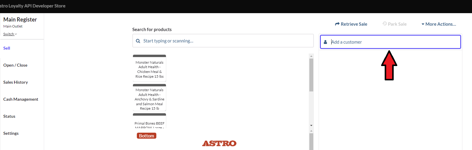 2. Once the points program has been set up in your Astro account, you should start to see the points accumulating for your customer in Lightspeed X. Add the customer to the sale in Lightspeed X.