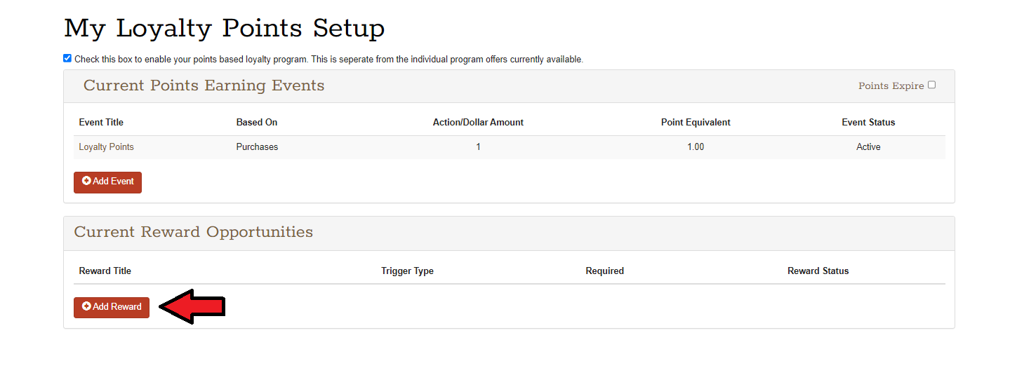 3. Select Add Reward or you can edit an existing Reward if you already have one set up.