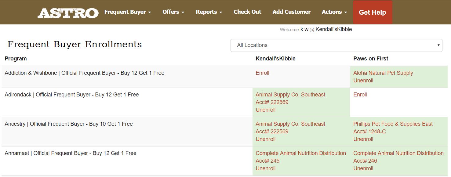 All of this can be managed from the Master Account under the Frequent Buyer menu within the Enrollment Grid. If you need to update your enrollments the grid can be the fastest place to do this.