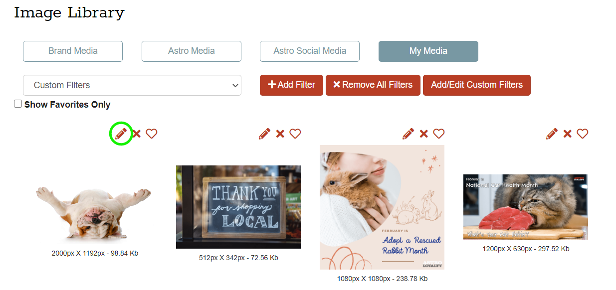- Click on the red Pencil Icon on your My Media image in order to assign a Customer Filter/s to it.