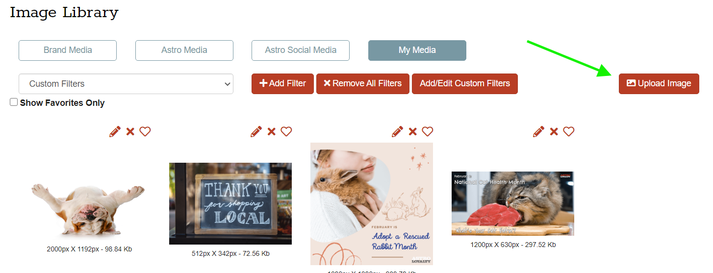 - Filters can be assigned to images that were previously uploaded to your My Media.