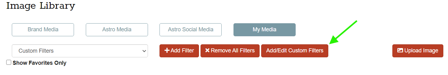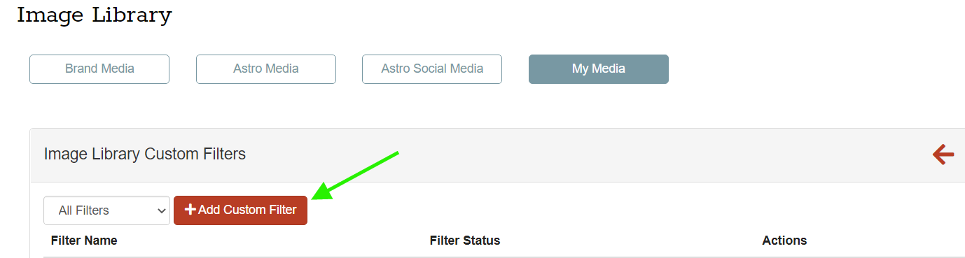 This will take you into your Image Library Custom Filters list. Click the red Add Custom Filter button.