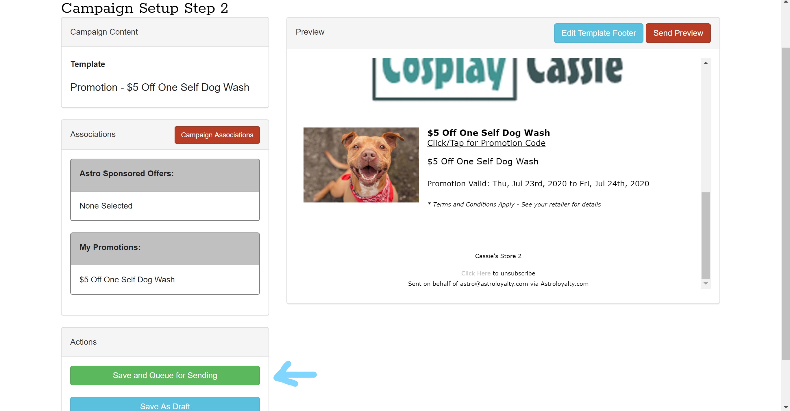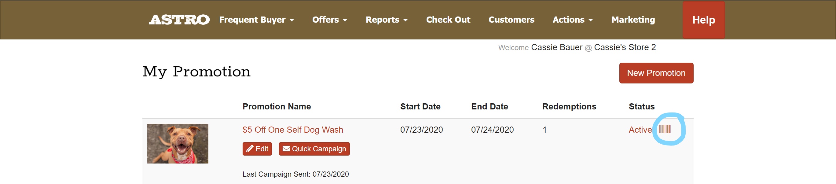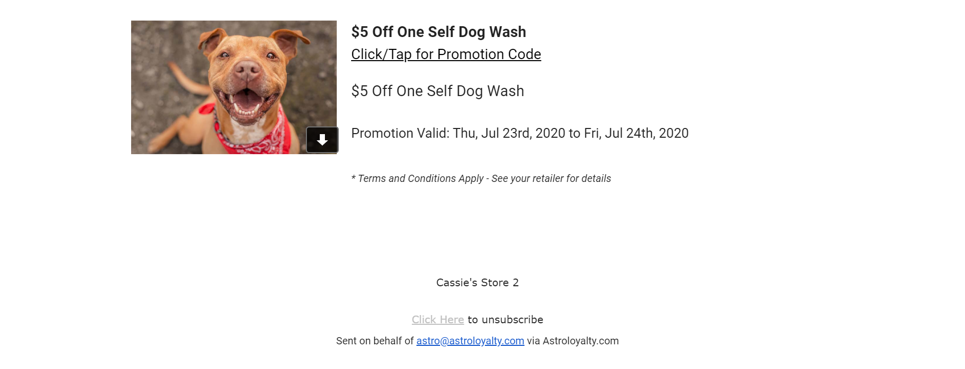 In this example, we have just sent out a My Promotions Campaign for $5 Off One Dog Wash to our customers.