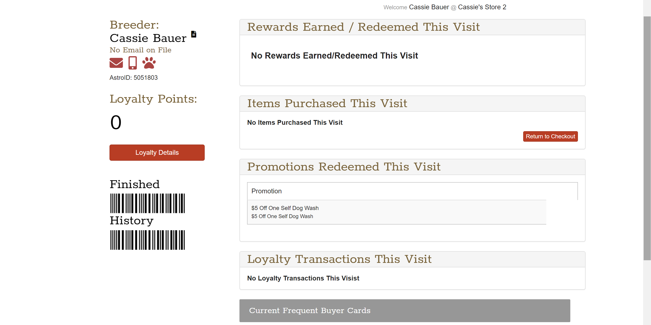 You can then scan the barcode or type it in to redeem the Promotion for the customers during Checkout. It will show under Today's Purchases, then select Checkout.